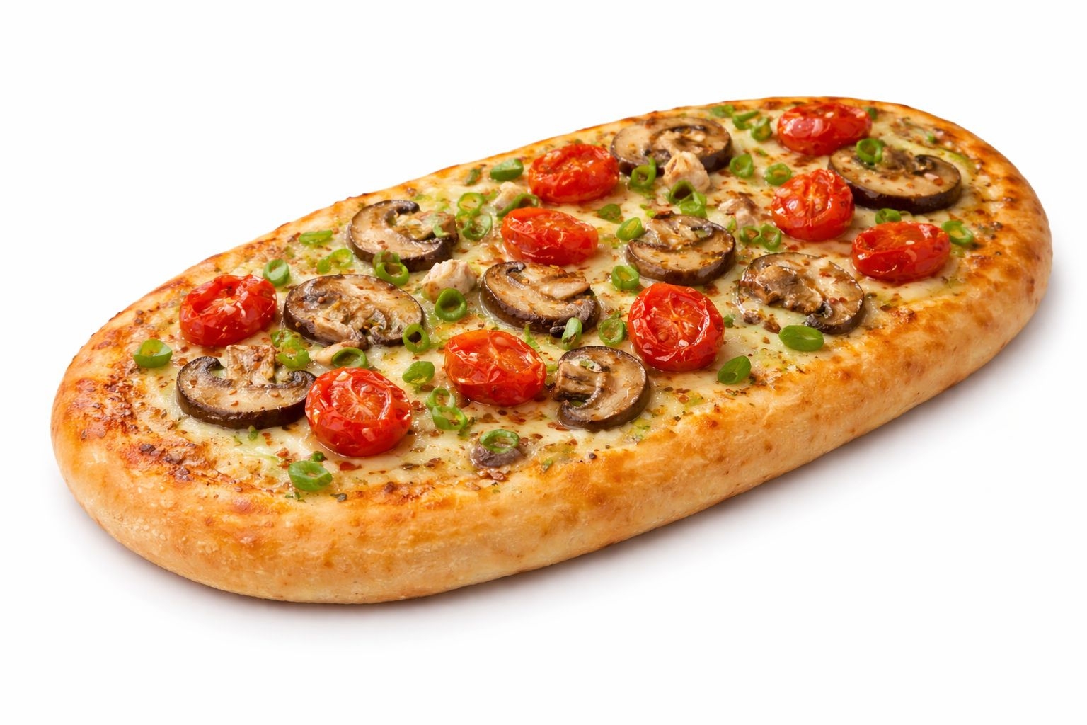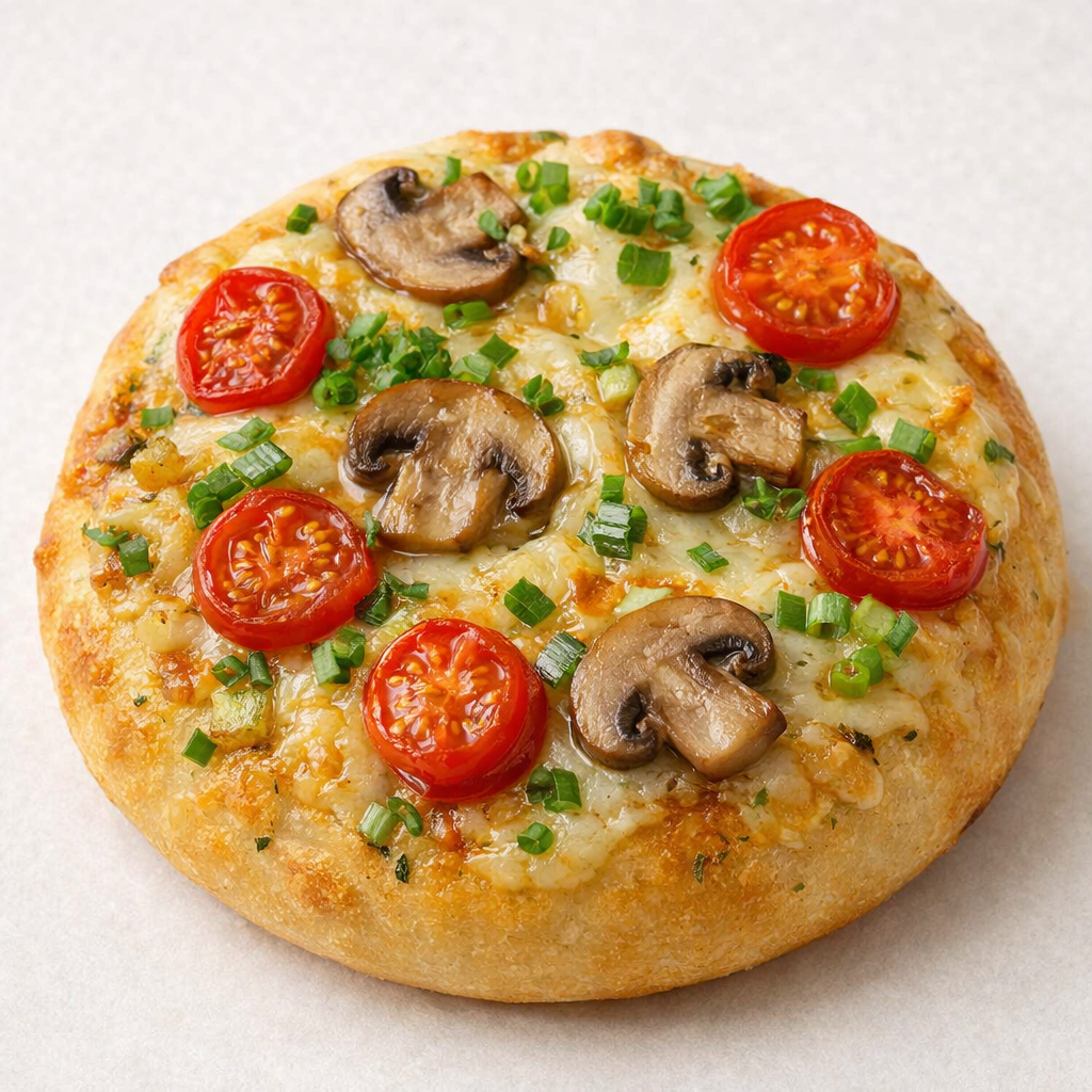 פוקצה קטנה רוטב שום גבינה צהובה בצל ירוק פטריות עגבניות