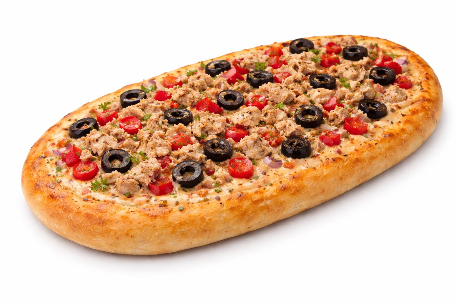 פוקצה גדולה רוטב אלף האיים טונה גמבה זיתים שחור